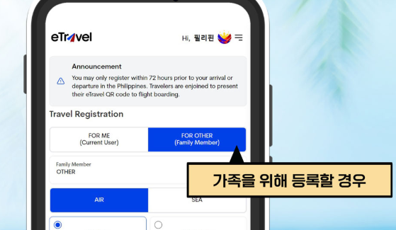 - 필리핀 이트래블은 입국 72시간 전부터 작성할 수 있습니다. 너무 일찍 접속하면 신청이 불가할 수 있으니 출국일 기준 3일 이내에 접속하세요.